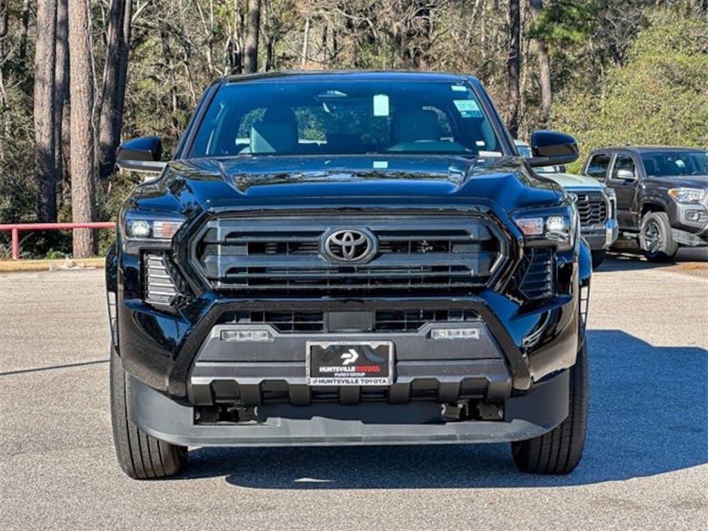 3.583 Axle Ratio, 4-Wheel Disc Brakes, 6 Speakers, ABS brakes, Air Conditioning, Alloy wheels, AM/FM radio: SiriusXM, Anti-whiplash front head restraints, Apple CarPlay/Android Auto, Auto High-beam Headlights, Auto-dimming Rear-View mirror, Brake assist, Bumpers: body-color, Driver door bin, Dual front impact airbags, Dual front side impact airbags, Electronic Stability Control, Emergency communication system: Safety Connect (up to 10-year trial subscription), Exterior Parking Camera Rear, Fabric Seat Trim, Four wheel independent suspension, Front anti-roll bar, Front Bucket Seats, Front Center Armrest, Front fog lights, Front reading lights, Fully automatic headlights, Heated door mirrors, Illuminated entry, Knee airbag, Low tire pressure warning, Occupant sensing airbag, Outside temperature display, Overhead airbag, Overhead console, Panic alarm, Passenger door bin, Power door mirrors, Power steering, Power windows, Radio: 8" Toyota Audio Multimedia, Rear step bumper, Rear window defroster, Remote keyless entry, Speed control, Speed-sensing steering, Split folding rear seat, Steering wheel mounted audio controls, Tachometer, Telescoping steering wheel, Tilt steering wheel, Traction control, Trip computer, Variably intermittent wipers, and Wheels: 17" Styled Alloy.Black 2026 Toyota Tacoma SR5 RWD 8-Speed Automatic 2.4L 4-Cylinder21/26 City/Highway MPG*** Price does not include Tax, Title, License Fees, Dealer Doc fee $225. Or Dealer Added Accessory- Purdy Protection $1195.